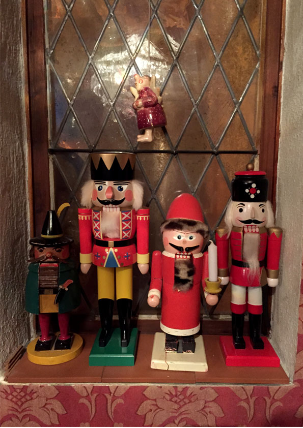 Eine weitere typische Weihnachtsfigur ist der Nussknacker, eine Figur aus Holz, die Nüsse mit einer Hebeltechnik in ihrem großen Mund knacken kann, allerdings selten zu diesem Zwecke eingesetzt wird, da sie meist nur als Dekorationsobjekt dient.