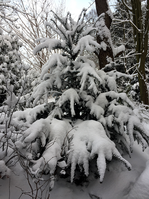 Neben dem traditionellen Essen spielte auch das Aufstellen des Weihnachtsbaumes eine große Rolle. In der Regel wurde der Baum (mehr oder weniger legal) im nahen Wald frisch geschlagen. Am Weihnachtsmorgen wurde er aufgestellt und von der gesamten Familie oder auch nur den Eltern geschmückt. Die Kinder sahen den Baum dann zur Bescherung am Heilig Abend. Gläserne Kugeln kamen erst in der zweiten Hälfte des 19. Jahrhunderts auf, und waren auch oftmals zu teuer. Am Baum hingen deshalb Äpfel, mit Blattgold verkleidete Nüsse, Strohblumen oder -sterne und Papiergirlanden. Der Brauch, den Baum mit Kerzen zu schmücken, kam erst in der Biedermeierzeit auf. Die Familie versammelte sich dann um den Baum und sang, meistens vor dem Essen, traditionelle Weihnachtslieder. Aufstehen sollte man vor Mitternacht von der weihnachtlichen Tafel nicht, da das bedeuten konnte, dass man Opfer von Räubern wurde oder die Hühner im Stall keine Eier mehr legten.